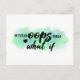 ‘Better an Oops’ inspirational quote postcard. A simple but effective typographical design, black text with a black heart on a sea green color textured background. This card will make a great addition to your home or office decor, or will be an ideal postcard to send to a friend or loved one.