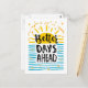 Encourage someone going through rough times with this cheery hand-lettering style typography design featuring the message in black, brush script letters, "Better Days Ahead" surrounded by watercolor sun with rays and stars and light blue ocean waves.