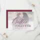 Modern minimalist elegant faux vellum wedding save the date card with your custom photo and chic trendy dark red merlot burgundy "better together" overlay calligraphy script. +++++++++++ Easy to personalize with your details on both sides!