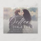 Modern minimalist elegant faux vellum wedding save the date postcard with your custom photo and chic trendy white "better together" overlay calligraphy script. +++++++++++ Easy to personalize with your details on both sides!