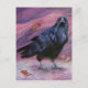 Between Worlds Raven postcard by Michaeline McDonald features a beautiful raven standing against the wind while Autumn leaves blow around him.