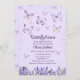 Fêtez l'arrivée imminente de votre petite fille avec notre invitation Lilac Butterfly Baby Girl Shower. Décorée d'illustrations charmantes de papillons lilas délicats flottant sur un champ de lavande serein, cette invitation donne un ton fantastique et enchanteur à votre baby shower. Réalisée avec soin dans le détail, elle capture la beauté de la nature et la joie de la maternité. Personnalisez les détails pour en faire le vôtre et partagez l'excitation avec vos proches. Avec son design élégant et sa palette de couleurs apaisantes, cette invitation laissera une impression durable à vos invités.