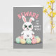 This design shows a minimalist gray background with a stylized white rabbit centered up front, its pink inner ears, rosy cheeks, and soft paw pads giving it a sweet look 🐰. The rabbit’s narrowed green eyes and slightly raised brow create a teasing, “don’t underestimate me” stare, like it’s daring a close friend to step closer. A tiny fang peeks out at the corner of its mouth, adding a mischievous edge, while a black “X” sits on its belly as a cheeky mark. At the rabbit’s feet, several oval eggs form a loose cluster, decorated with simple stripes in pastel mint, pale yellow, and blush pink 🌷. Near the top, the word “BEWARE” curves in rounded pink letters, drawing attention first. Beneath it, “OF THE BUNNY KICKS” appears in stacked white text, centered and easy to read against the gray. The overall layout keeps the rabbit and eggs anchored in the middle, with the warning text hovering above in a neat, balanced arrangement.