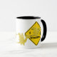 Beware of Cartoon Dragons Warning Sign Mug. Cool and funny yellow and black warning sign advising of dragon activity with funny cute yellow orange cartoon dragons with wings, colour stars and star tail drinking mug. This cool and funny beware of dragons mug is fully customizable, add your texts and images! A great dragon gift for the little big dragon fans!