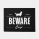 This bold white-on-black design lets your visitors know what they're up against before they ever set foot inside your home. Featuring a silhouette of a Cardigan Welsh Corgi with the text: Beware: Patrolled by Corgi. Great fun and a clean look for your front porch or stoop. Comes in two sizes and many breed choices!
