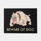 Warn your guests with a "Beware of Dog" doormat. Shown here with a black background, you can change the background colour to the colour of your choice by selecting the "customize it" button and selecting another background colour. You can also edit the text shown in the design template if you desire.