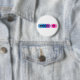 Centred within smooth overlapping shapes of Bisexual Pride colours, this string of dots and rounded dashes spells b-i in Morse Code and looks like stylized cells and nuclei. Go science! Choose your favourite background colour and be part of the art!