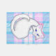 Bianca toon kitty wears a pink bow on a sweet pink and blue plaid patterned blanket. This cat is ready to cuddle.