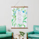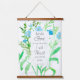 A hanging tapestry featuring a Bible scripture from the book of Isaiah 12:2 KJV and decorated light blue flax watercolor wildflowers and green stems.