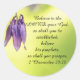The Old Testament scripture text “Believe in the LORD your God, so shall you be established; believe his prophets, so shall you prosper.” 2 Chronicles 20:20, on a colourful yellow and green background with purple flowers blossoms.