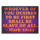 WHOEVER OF YOU DESIRES TO BE FIRST SHALL BE SLAVE OF ALL. - Mark 10:44. From Jamieson-Fausset-Brown Bible Commentary: Mark 10:44.