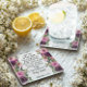 Bible verse Romans plum pink floral scripture Glass Coaster