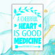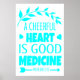 Un coeur joyeux est une bonne médecine, Poster, sur Archival Heavyweight Paper (Matte) en turquoise sur blanc qui exsude un sens de résonance spirituelle.