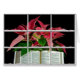red Christmas poinsettia with open Holy Bible in snowy windowpane frame