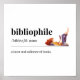 This poster features a definition of the word "bibliophile." Pictured above the definition, is an illustration of a girl reading a book. Also available in white on black.
