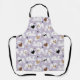 Cute bichon frise dogs in sweaters and bows with scattered dog bones and paw prints on a light purple background.
