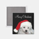 Bichon Frise puppy in a Santa hat wishes you a Merry Christmas photo magnet. Text may be changed or removed with the CUSTOMIZE button