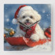 Bichon Frise Dog in Sledge Let it Snow Christmas Square Wall Clock