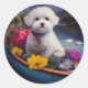 Bichon Frise on a Paddle: A Scenic Adventure Classic Round Sticker