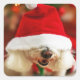 Bichon Frise puppy wearing Santa costume Square Sticker
