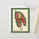 A fine art postcard from Curtis Botanical Magazine. An illustration of a brilliant red and green leaf from a Caladium plant which has been digitally enhanced.