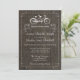 Rustic Wood-look Wedding Invitations. Tandem bicycle built for 2 with vintage curly ornaments and scroll frame. Casual handwritten retro chalk typography makes it perfect for rustic farm or country estate weddings, but with a few changes you can create an entirely different appearance suitable for traditional or modern weddings with a touch of sophisticated charm for the contemporary bride and groom. Easy to use versatile template can be modified for formal or semi-formal weddings. Click Customize It to change the type style, colours, and size of fonts. Please contact us for help with customization, or if you need additional room for your wedding details.