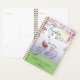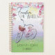 Colourful planner for bike enthusiasts that is easily personalized! Beautiful messaging reads: "Freedom on Wheels" in a decorative font with a lovely depiction of a pink bike with a basket sitting out in a field on a beautiful day with flowers framing the top and fallen pink petals at the bottom by the wheels. Personalize the text at the bottom to add your name or anything else you desire. On the back we have the same design, less the bike but we made it look like dusk with the moon instead of the sun for a very cool presentation overall!