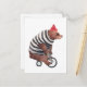 This design features a watercolor illustration of a bear on a bicycle wearing a striped sweater and red hat.