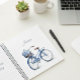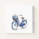 watercolor painting of a bicycle with a basket full of flowers in Delft Blue colours