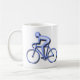 A lone bicyclist races through this design in a slick neon-looking outfit. Mountain bike, ten-speed, two-wheeler, whatever it is you can be sure it is fast.