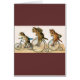 Adorable vintage illustration of two cats and a puppy riding their bikes with backpacks on.