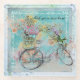 A beautiful spattered polychromatic water coloured bicycle with flower baskets on blue burlap rimmed with white filigree, and with a greenish grey and white textured border around the blue burlap. Image credits: Pixabay.com – Image# 2416366, Image# 489879, Image# 2148492, Image# 1064162