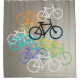 A decorative colourful bicycle abstract against a soft shaded beige background.