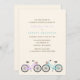 Stylish and fun invitations feature a beautiful illustration of two bikes in soft pastel colours perfect for any spring or summer wedding.