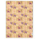 Birds and Unicorns are playing on a spring meadow, fantasy scrapbook or craft paper, seamless pattern in peach and purple colours.