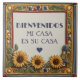 Bienvenidos, "Mi Casa Es Su Casa", "sunflowers welcome sign", "spanish sunflower flowers", "floral yellow flower", "decorative colourful border", "welcoming mexican plaque", "latino latinx latina home", "rustic ceramic tile style", "hello home heart house"