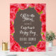 Belle grande douche nuptiale de style Derby signe acrylique de bienvenue avec des roses d'aquarelle rouge, le libellé Off à l'autel et vos détails en lettrage chic sur un arrière - plan noir transparent fumé. CORRESPONDANCE d'objets dans notre collection.