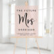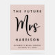 Élégant panneau de bienvenue en acrylique rose blush givré pour le lancement de mariage, avec "La Future Mme" écrit en typographie simple et un grand script élégant, le nom de jeune fille et la date du lancement de la mariée.