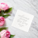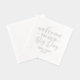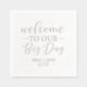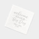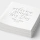 Un signe qui dit "Bienvenue à notre grand jour" avec les noms des mariés et des mariés et la date du mariage ci-dessous