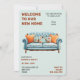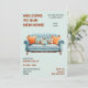 Célébrez votre nouvelle maison avec style! Notre charmante invitation à la fête de la maison présente une image cosy d'un canapé bleu clair orné d'oreillers à lancer marron clair. Parfait pour inviter amis et famille à partager votre joie en vous installant dans votre nouvel espace. Customisez vos détails et rendez votre événement inoubliable grâce à ce design accueillant !