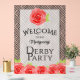 Clear ACRYLIC Derby party Le panneau d'accueil présente des roses rouges sur un arrière - plan de bandes diagonales noires et blanches et vos détails en lettrage chic. CORRESPONDANCE d'objets dans notre collection.