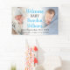 Bienvenue à votre nouveau bébé garçon avec cette bannière de faire-part de naissance personnalisée avec deux photos personnalisées et texte modifiable en gris et bleu. Ajoutez les statistiques de naissance (date, heure, poids et longueur), son nom et tout message supplémentaire pour créer un signe chaleureux et chaleureux de bienvenue pour ce jour spécial. Idéal pour les entrées, les rétrogradins photo ou les tables de fête. Pour modifier le placement de la photo : cliquez sur le bouton pour modifier le design, cliquez sur "rogner", et déplacez l'image.