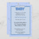 Arrière - plan bleu avec des mots bleu et blanc qui disent Welcome Baby. Customisez l'invitation avec vos coordonnées de baby shower.