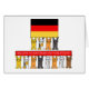 Des chats en caricature brandissant un grand drapeau allemand et une longue bannière rouge mince qui dit "Bienvenue à notre étudiant en devises étrangères". L'image a un arrière - plan blanc immaculé.