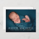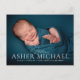 Faire-part de naissance. Faire-part bébé. Bébé garçon. Petite fille, Sexe neutre. Photo. Bonjour . Bonjour Bébé. Audacieux. Moderne. Contemporain. Bleu. Carte postale.