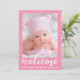 Bienvenue Nouveau bébé moderne Faire-part rose carte
