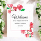 Bienvenue Affiche de mariage rose blanc pour mariage avec fleurs de magnolia aquarelle peintes à la main sur fond blanc.
