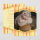 Pâtes et rayures rose, orange et jaune accueillent dans le monde une nouvelle invitation pour bébé fille. Tout le monde ne veut pas d'un baby shower ou peut-être que vous ne vous y sentez pas à la hauteur, ou même le bébé est arrivé plus tôt que prévu. Dans certains pays, il est même considéré comme de la malchance de célébrer avant la naissance du bébé, donc si vous voulez être un peu différent tenir une fête de nouveau-né après votre bébé est venu au monde à la place. Personnalisez avec vos détails et une photo spéciale de votre fille.