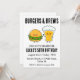 Célébrez votre journée spéciale avec un barbecue jardin et de nombreux encouragements! Cette invitation à thème rustique comprend un hamburger délicieux et une bière fraîche, idéale pour une fête d'anniversaire pour adultes. Le design comprend les mots clés "cheers", "bières" et "jardin" pour vous aider à trouver l'invitation parfaite pour votre célébration.