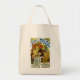 The printing came out very well, better than I had anticipated. The natural color fabric is sturdy with strong seams and comfortable handles. This tote fits easily over my shoulder. As it is filled, the bottom flattens out--very cool! I would buy this product again. This grocery tote holds a lot of groceries! The image quality was very good. The colors were a little darker than I had expected. The darkness may have been due to printing on a natural color fabric rather than on white. The cat design is attractively centered on the tote. The spirit of the design is very lively, just as it appears on the Zazzle website.